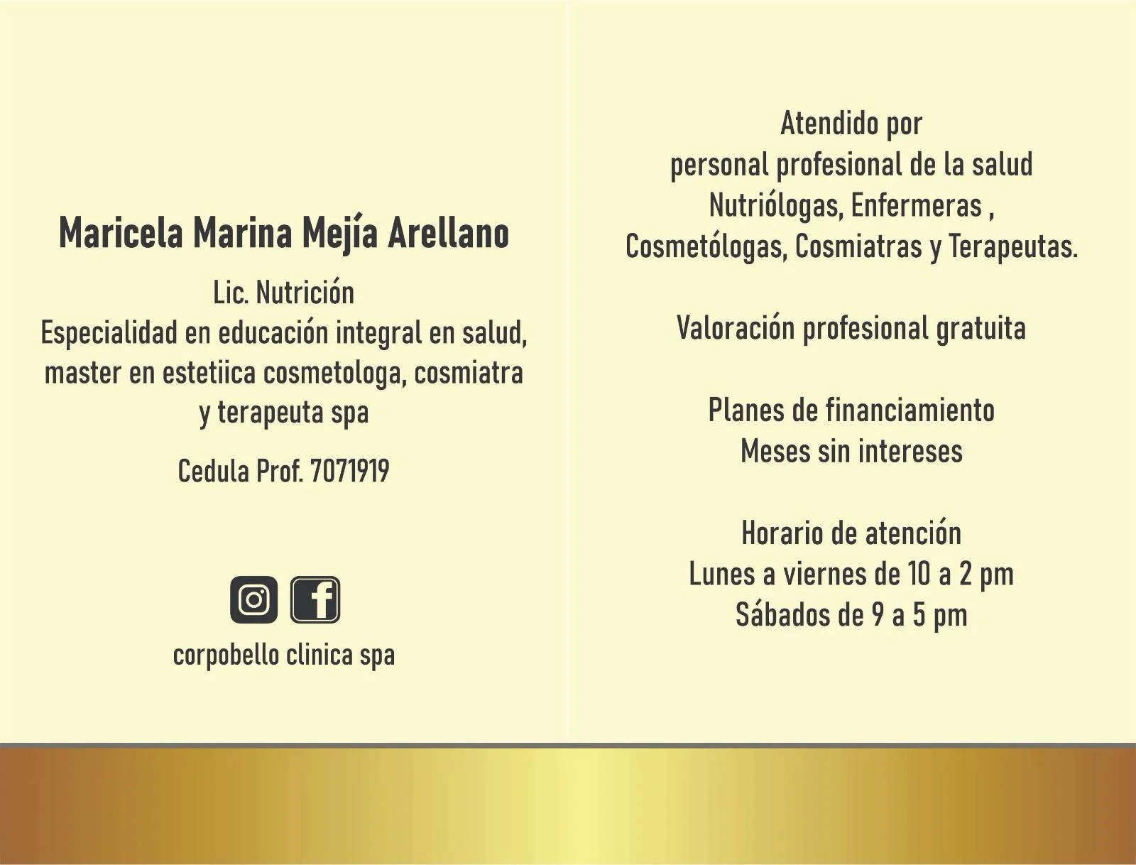 Corpobello clínica spa nace el 5 de octubre del 2012 con la finalidad de brindar servicios integrales de salud y belleza al público con un servicio unisex y precios accesibles, los servicios que se ofertan son: nutrición y control de peso, terapias alternativas, terapias spa, aparatología estética, tratamientos estéticos anti edad, corporales, faciales y depilación láser.